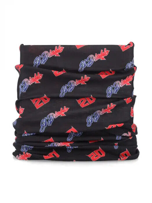 Neck warmer from the official collection of rider Fabio Quartararo. Blue base with graphic print of the number 20 and "El Diablo" lettering.
