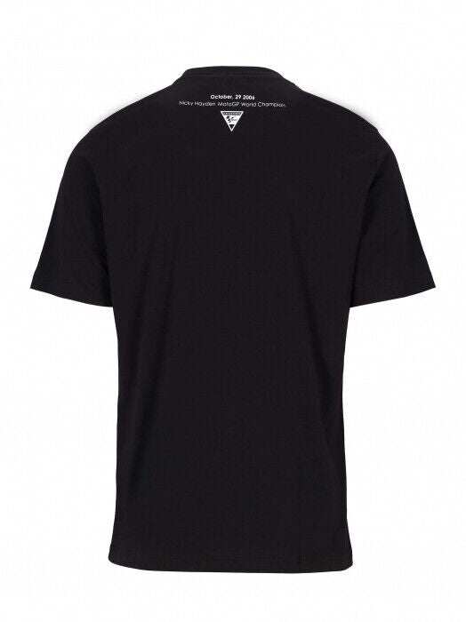T-shirt men by the collection dedicated to the American MotoGP pilot Nicky Hayden. Black base with Nicky Hayden print and the number "69" on the front. Print with the date of the World Championship victory and MotoGP Legend logo on the back.